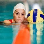 Leuchtende Farben verbessern die Sichtbarkeit im Wasser und helfen bei der Orientierung während eines Wasserballspiels.